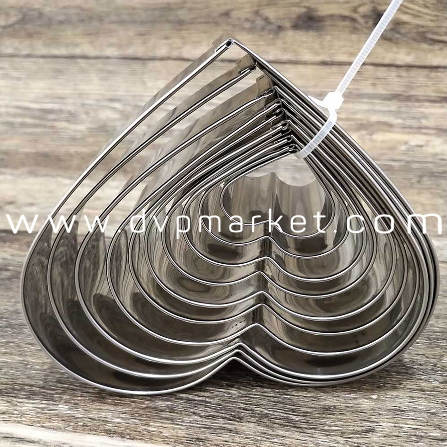 Đặc điểm của bộ 10 khuôn mousse tim inox 304 (size 3x3 - 3x12):