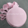 Sản phẩm có nắp rời với tông màu hồng cùng kèm 6 chiếc thìa bắt mắt và nổi bật trong không gian bếp xinh của bạn