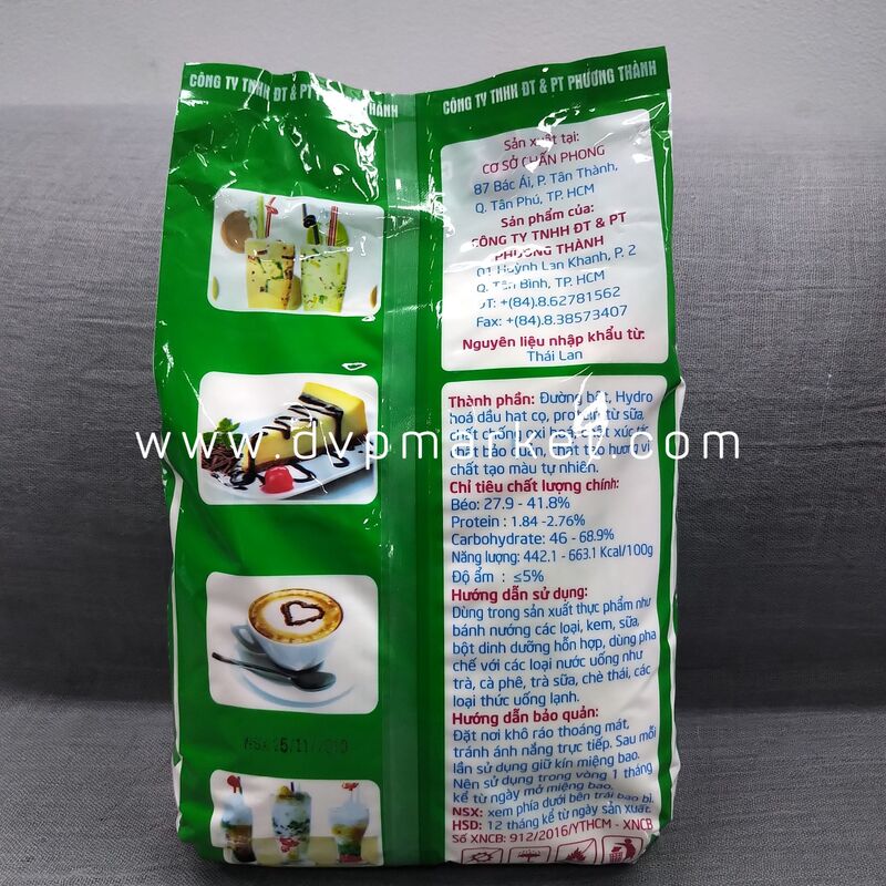Bột kem béo Thái Lan là một trong những nguyên liệu không thể thiếu trong pha chế các loại đồ uống mang vị ngọt. Sản phẩm làm từ nguyên liệu bột kem béo 100% nghiền nhỏ và kĩ, có độ mịn cao. Bột kem béo Thái Lan có trọng lượng 1kg được đóng gói trong bao bì kín, dễ dàng sử dụng và bảo quản không bị ẩm mốc.