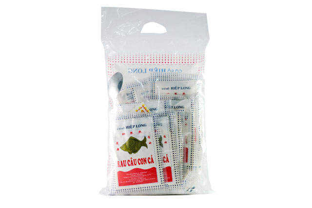 Rau câu con cá dẻo Hiệp Long (500gram) có dạng bột mịn, màu trắng, có tính mát, mềm dẻo, độ kết dính tốt, tạo độ đông đặc cho những loại thạch, rau câu. Sản phẩm được đóng hộp 500gr, trong hộp đựng những gói bột nhỏ 10g tiện lợi, dễ sử dụng và bảo quản.