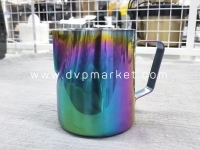 Điểm nổi bật của ca đánh sữa là vẻ bề ngoài bắt mắt với 7 màu sắc hòa quyện với nhau. Ca có khả năng dẫn nhiệt nhanh, làm lạnh tốt so với những chiếc ca đánh sữa bình thường. Phần miệng ca có góc rót nguyên liệu cong 120 độ giúp tạo ra dòng chảy chính xác. Phần miệng được đúc liền mạch với thân tạo nên dòng chảy liên tục, không bị bắn ra ngoài và không bị đứt quãng khi thực hiện kĩ thuật vẽ latte art. Phần tay cầm ca đánh sữa thiết kế chắc chắn, rộng rãi vừa đủ để bạn cầm nắm dễ dàng mà không bị trơn tuột trong quá trình đánh tạo bọt sữa. Sản phẩm có 2 loại thể tích khác nhau tương ứng với kích thước khác nhau: 350ml (H9cm x M8cm x Đ8.2cm), 600ml (H11.2cm x M9.1cm, Đ9.2cm) tùy theo sự lựa chọn mỗi người.