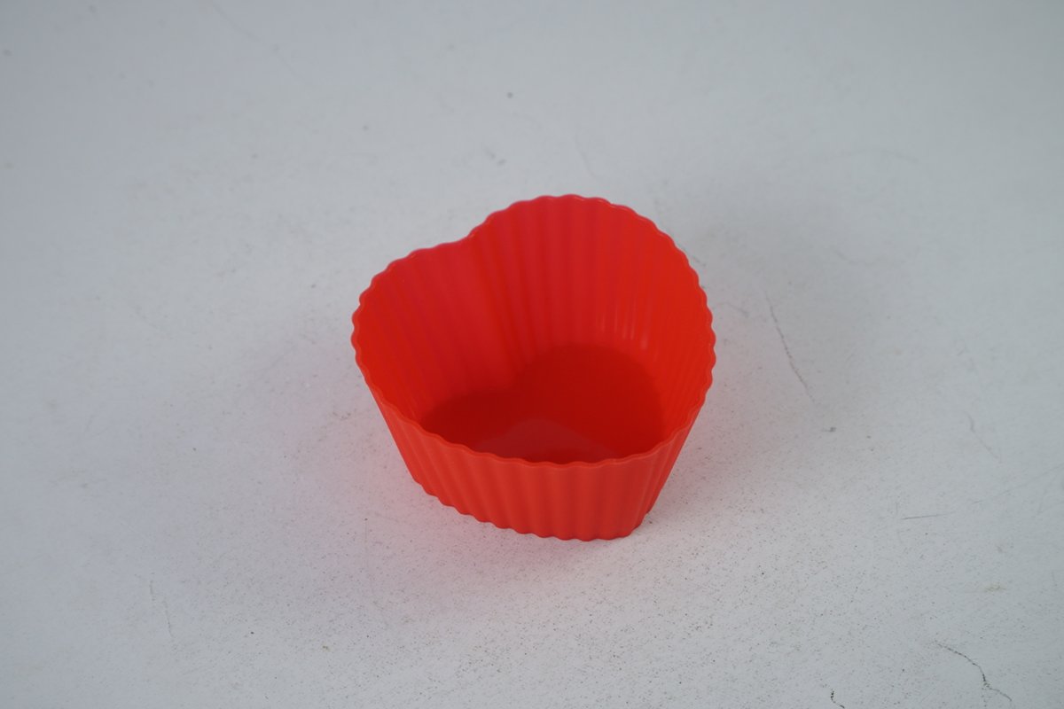 Cup được làm bằng chất liệu silicon chịu nhiệt được nhiệt độ cao, hoàn toàn không độc hại, an toàn cho người sử dụng. Đồng thời chất liệu mềm, không mùi vị hay ảnh hưởng đến chất lượng của bánh. Cup silicon được thiết kế đẹp mắt với kiểu dáng trái tim có nét đường viền sọc xung quanh phần chiều cao của cup, tạo độ ma sát cũng như chống dính tốt. Sản phẩm có kích thước gồm 7 x 6 x 3.2cm với màu sắc đỏ tươi tạo điểm nổi bật cho chiếc bánh của bạn.