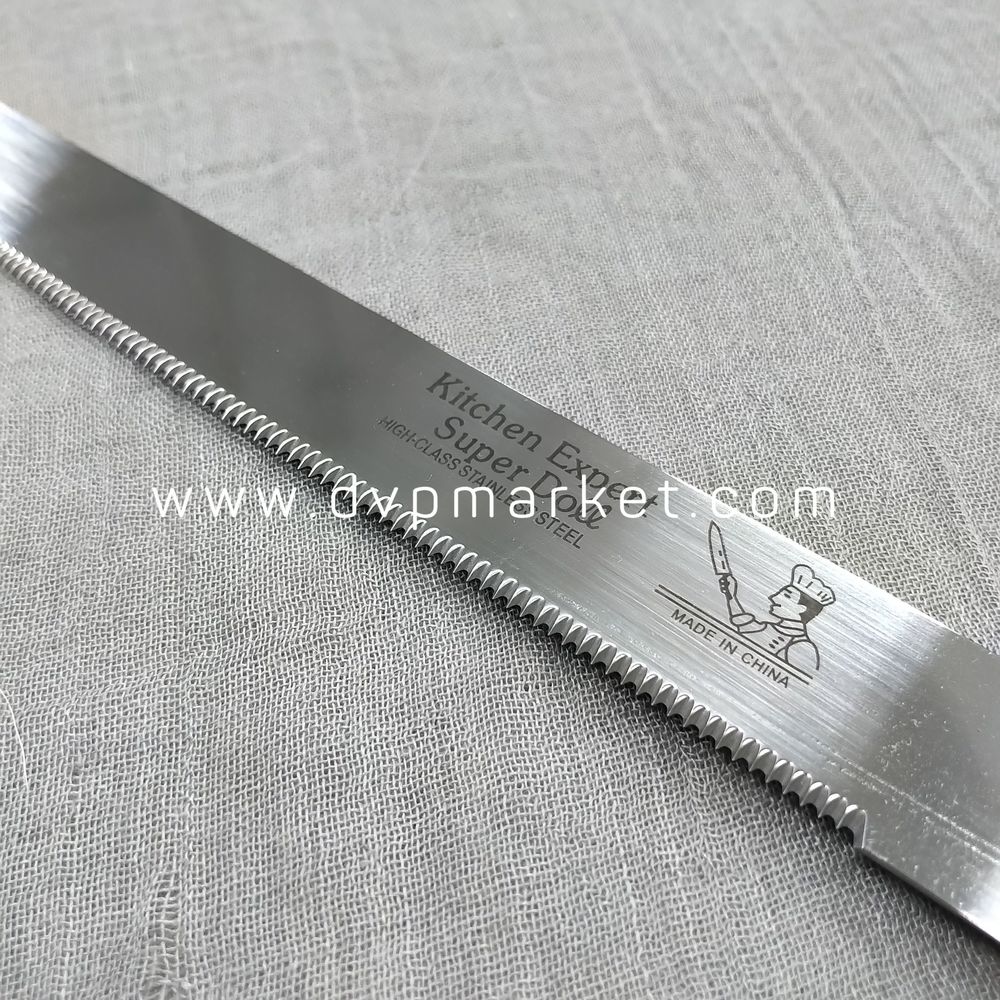 Đây là loại dao chỉ dành riêng cho việc cắt mà không có chức năng thái hay gọt như loại dao thông thường khác. Bởi vì, khi bánh mới lấy khỏi lò rất nóng, lưỡi dao thường cắt làm nham nhở bánh, khiến bánh bị lõm, khó để trang trí. Lưỡi dao răng cưa được thiết kế hiện đại, tinh tế có nét đường vân nhẹ, làm bằng chất liệu thép không gỉ cao cấp, sắc nét, sáng bóng, an toàn khi tiếp xúc với thực phẩm. Cán gỗ chắc chắn, bền đẹp, chống ẩm mọt, chịu nước tốt được làm bằng chất liệu gỗ màu nâu nhã nhặn, sang trọng, khi cầm sẽ chắc tay.