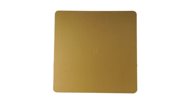 [Đế tròn lót bánh 8 được sản xuất và gia công tại Việt Nam có dạng hình vuông cạnh 25cm. Sản phẩm làm từ bìa cứng và giấy bóng có màu vàng hoặc trắng. Sản phẩm để nơi khô ráo, thoáng mát và sử dụng trong thời gian dài.