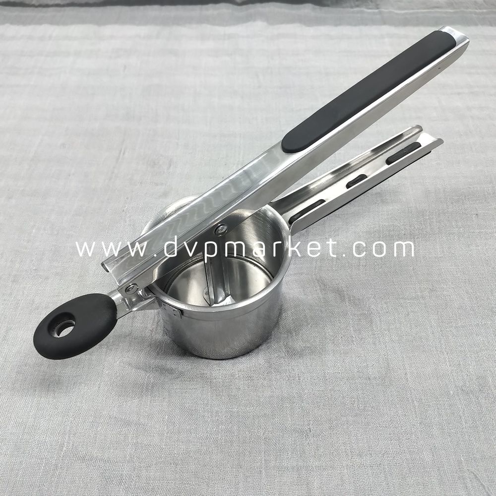 Dụng cụ ép khoai tây, ép bún có dạng tay cầm tiện lợi, đầu cầm chắc chắn có bọc thêm lớp silicone chống trơn trượt