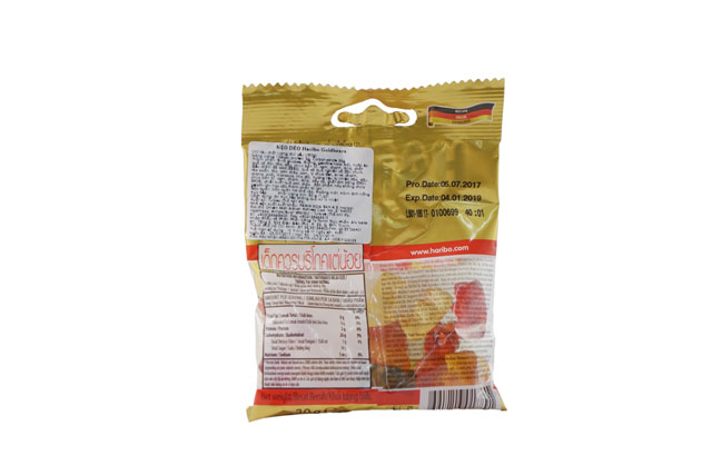 Nhắc đến Haribo Goldbears 30g là nhắc đến loại kẹo dẻo với nhiều màu sắc khác nhau. Kẹo có hình những chiếc gấu xinh xắn, đáng yêu có vị ngọt chua dịu của các loại hoa quả. Sản phẩm được chiết xuất từ nước ép trái cây tươi nguyên chất của dâu, chanh, cam, thơm, táo và mâm xôi trên dây chuyền công nghệ hiện đại khép kín theo tiêu chuẩn của Thổ Nhĩ Kỳ, đảm bảo an toàn vệ sinh thực phẩm. Haribo Goldbears 30g không sử dụng hóa chất độc hại và an toàn với sức khỏe người tiêu dùng.