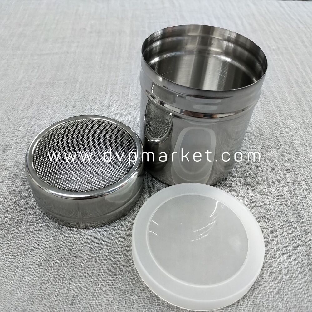 Hũ rắc được làm từ chất liệu inox không gỉ được phủ 1 lớp sáng bóng, bền chắc chắc, an toàn cho người sử dụng. Sản phẩm với thiết kế gọn nhẹ, khi cầm vừa lòng bàn tay, có độ cứng cáp tốt, không sợ bị va chạm hay bị móp méo. Đầu hũ được thiết kế dạng màng lưới có lỗ siêu nhỏ có nắp nên dễ tháo rời, thuận tiện cho bạn rắc bột gia vị trên món ăn. Ngoài phần nắp lưới ra còn có thêm một nắp với chất liệu nhựa mỏng có tông màu trắng đồng thời là trơn và kín không hở nên giúp bạn che đậy gia vị tránh ảnh hưởng tác động bụi bẩn bay vào.