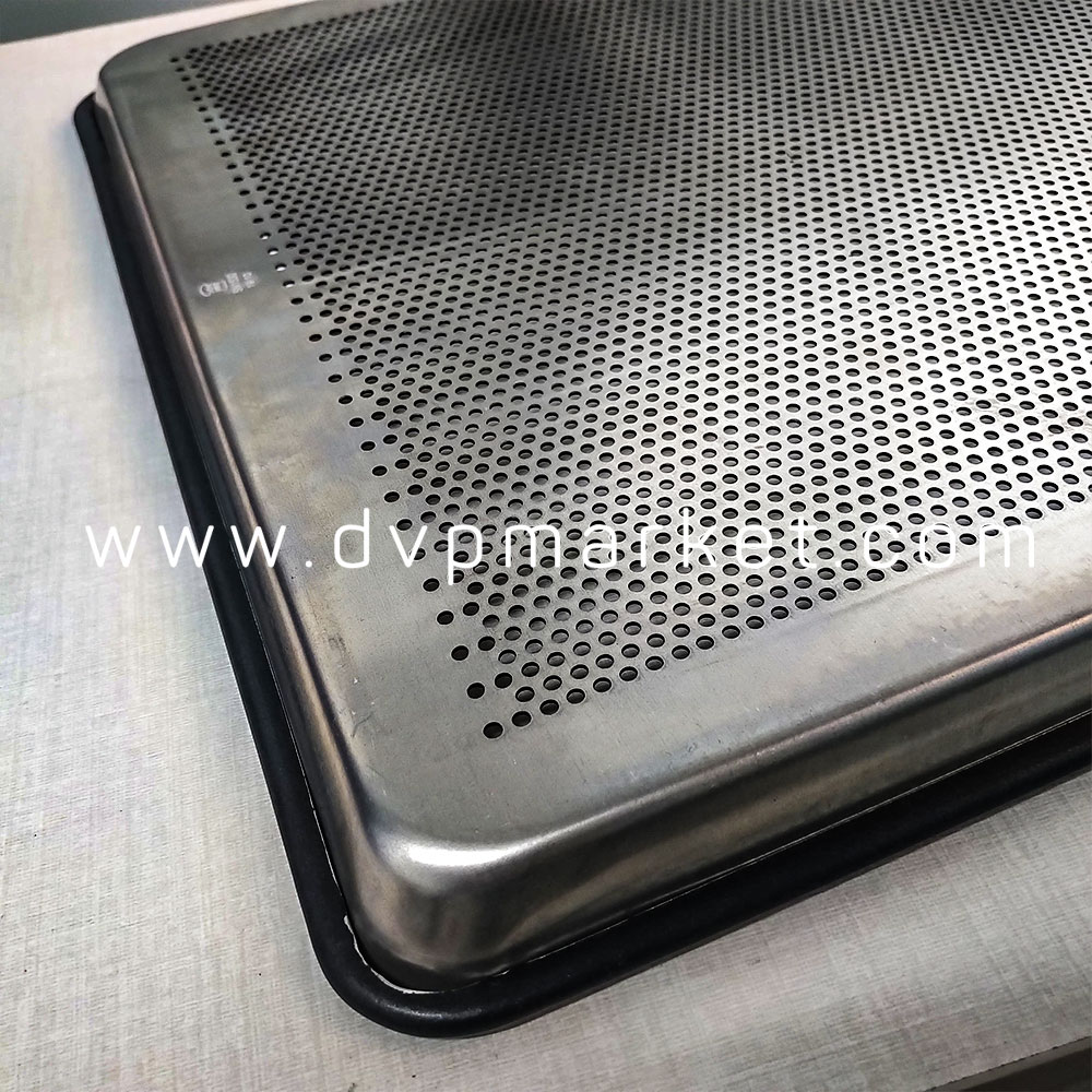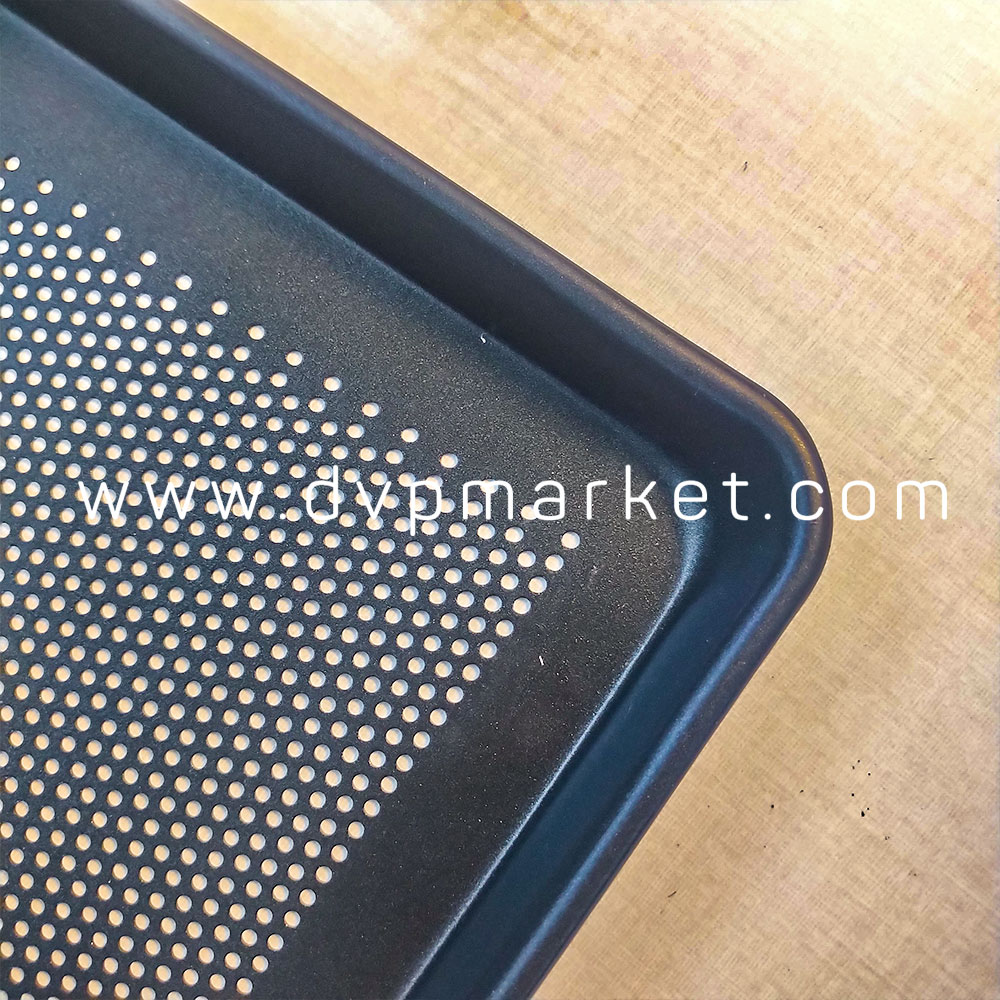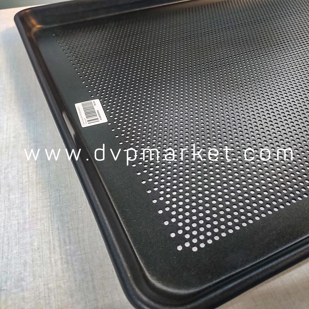 Khay nướng có đặc điểm được thiết kế có lỗ nhỏ giúp bạn khi nướng có thể bỏ bớt váng dầu mỡ