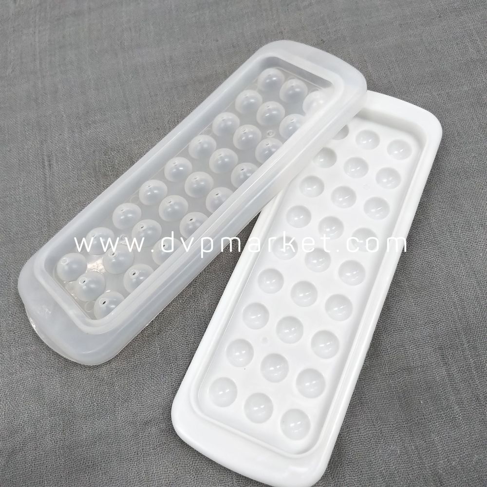 Chất liệu là nhựa dẻo chịu được nhiệt độ cao sử dụng linh hoạt trong lò vi sóng, lò nướng đa năng, lò hấp, tủ đông, tủ lạnh…an toàn. Bộ khuôn làm đá tròn viên nhỏ, thạch, hạt trân châu không độc hại, không dính, không bị gãy, dễ dàng để làm sạch. Sản phẩm có kích thước 19cm x 6.5cm, thiết kế màu trắng. Bên cạnh đó, một khay khuôn gồm nhiều lỗ hình tròn đều nhau giúp bạn dễ dàng tạo nhiều bi tròn nhỏ trong cùng một lúc.