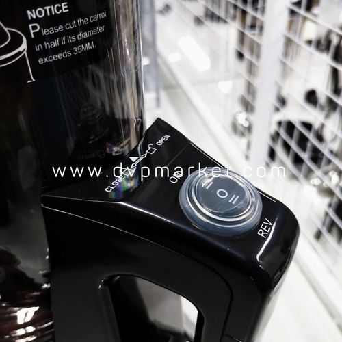 Để lấy nước ép sau khi hoàn thành, người dùng chỉ cần đẩy thanh gạt theo hướng mở/ tắt được chỉ dẫn trên thân máy
