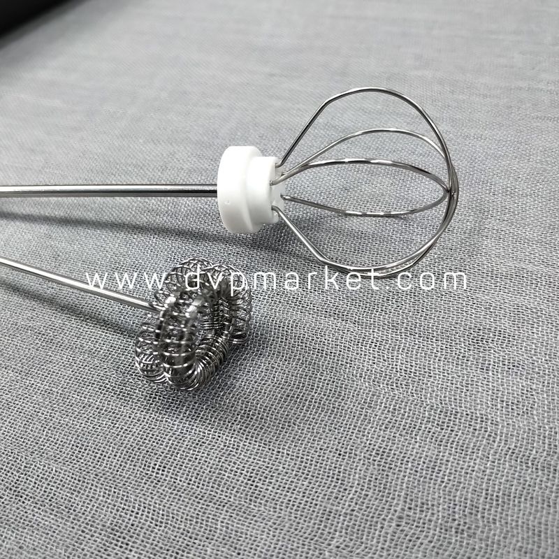 Đầu máy được thiết kế 2 đầu là một đầu để đánh tạo bọt, một đầu là dụng cụ để khuấy, đều là chất liệu thép không gỉ