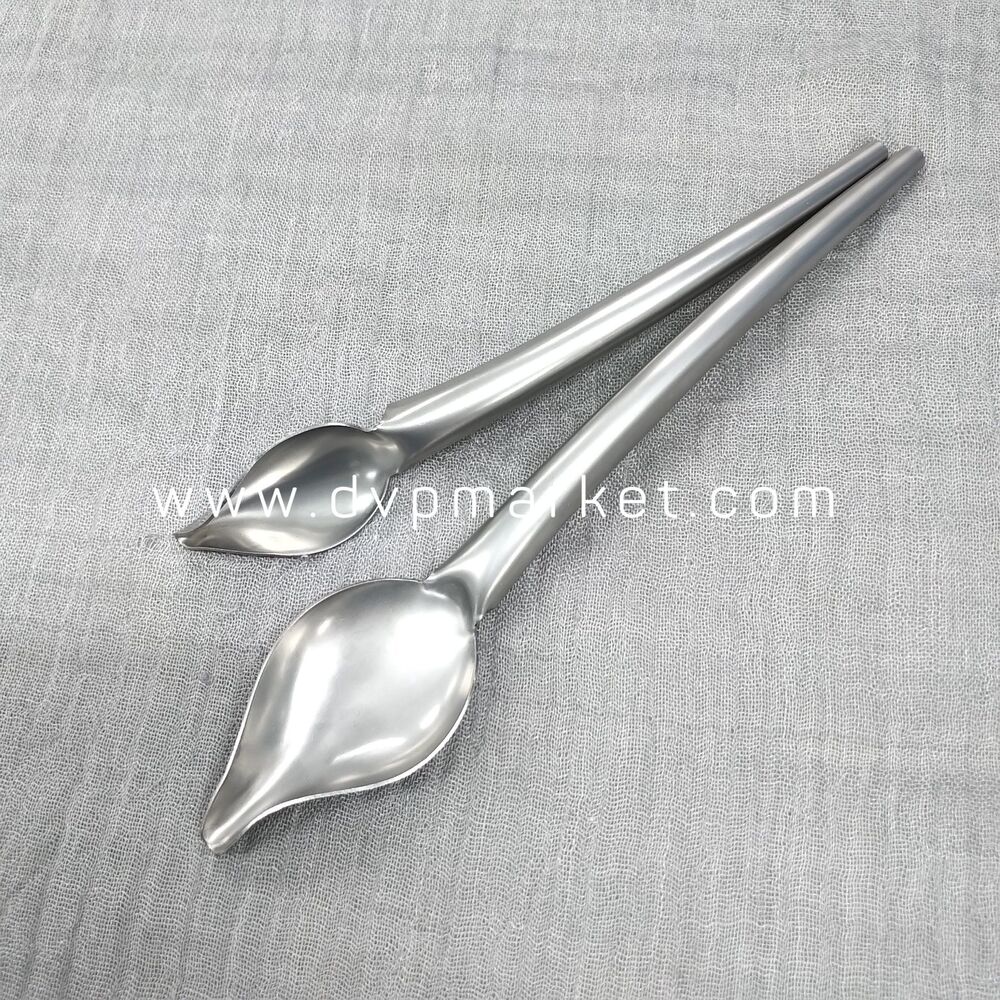 Phần đầu muỗng được thiết kế kiểu dáng giống như chiếc lá được uốn cong gợn giúp bạn dễ dàng tạo nét vẽ nghệ thuật cho món ăn của mình
