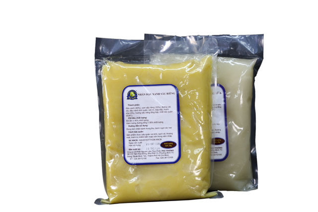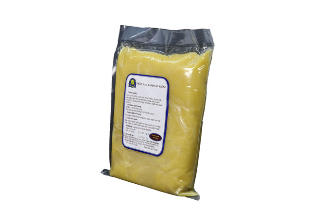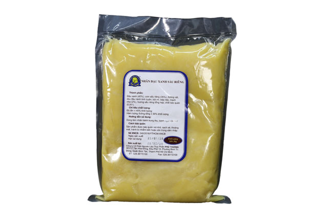 Nhân đậu xanh sầu riêng được chế biến bằng công nghệ kĩ thuật hiện đại với nguyên liệu chọn lọc kĩ lưỡng. Sản phẩm an toàn, không dùng hóa chất độc hại, đảm bảo an toàn vệ sinh thực phẩm. Nhân mềm mịn, vị bùi và có mùi thơm rất đặc trưng.