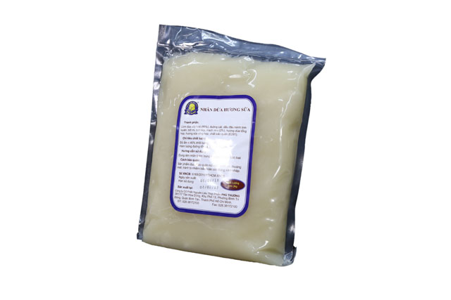 Nhân dừa hương sữa được chế biến bằng công nghệ kĩ thuật hiện đại với nguyên liệu chọn lọc kĩ lưỡng. Sản phẩm an toàn, không dùng hóa chất độc hại, đảm bảo an toàn vệ sinh thực phẩm. Nhân mềm mịn, vị béo bùi và có mùi thơm rất đặc trưng.