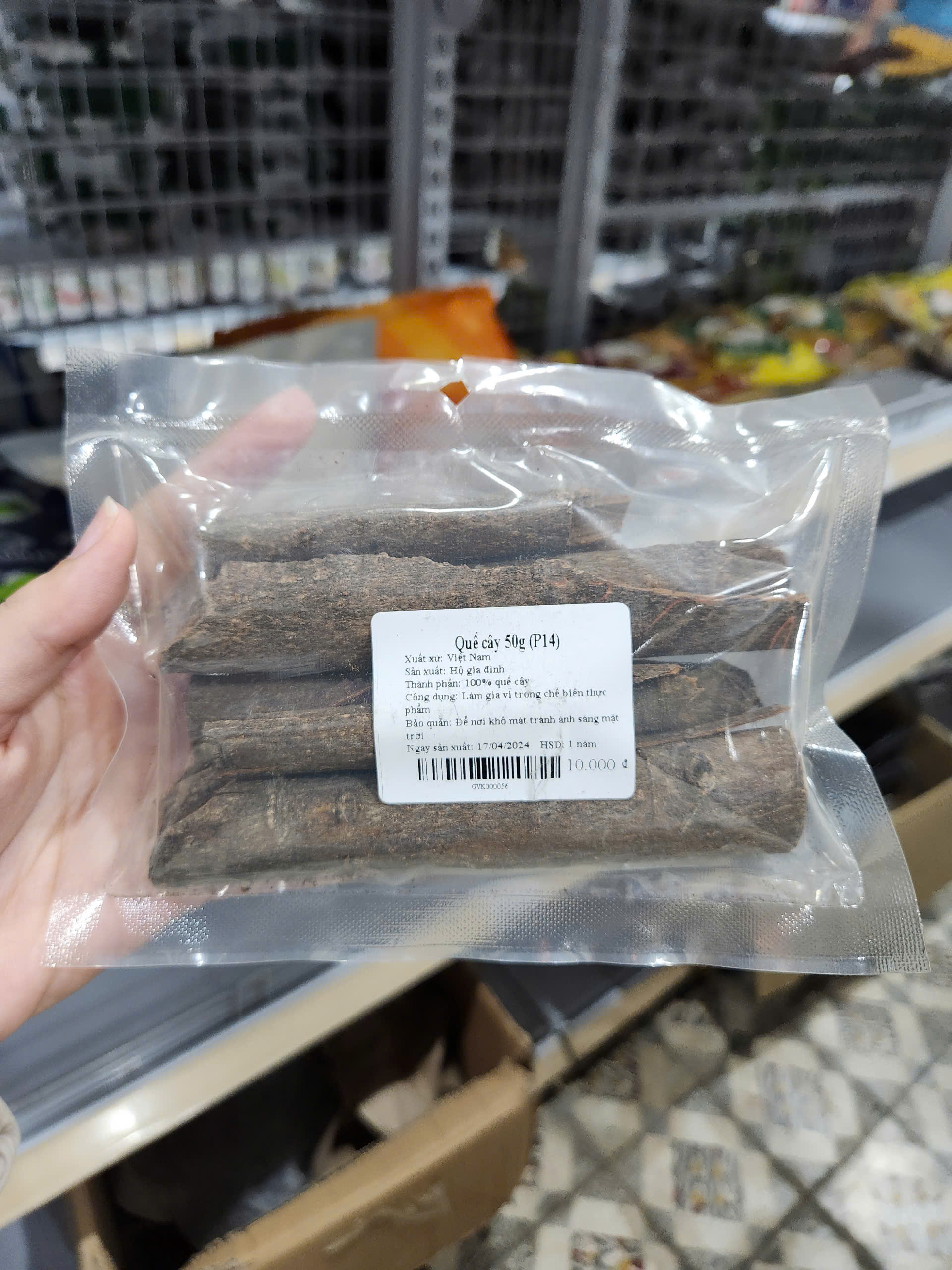 [Quế cây được dùng làm các loại bánh như bánh mousse, bánh ngọt, chế biến các món ăn như gỏi tai heo, nấm kho hương quế… đem đến hương vị cay cay thơm ngon đặc trưng cho món ăn. Ngoài ra quế cây còn dùng để ngâm rượu, làm bài thuốc chữa bệnh hiệu quả.][Bảo quản quế cây 50g nơi khô ráo, thoáng mát, tránh ánh nắng trực tiếp, tránh ẩm. Buộc kín miệng gói nếu chưa sử dụng hết.]