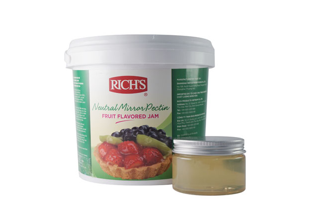 Rich mứt trang trí bánh có độ sánh tốt, dễ thao tác trang trí bánh và chế biến thức uống. Mứt có màu sắc tươi sáng phù hợp dùng cho trang trí, cấu trúc mượt và sáng bóng, dễ dàng cắt bánh mà không gặp vấn đề mứt dai và vướng khi bánh được bảo quản 5 ngày trong tủ mát.