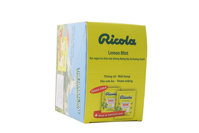 Kẹo ngậm thảo mộc không đường Ricola Sachet Lemon Mint 15g có công dụng trị ho, trị đau họng, ngứa họng, hỗ trợ trị dị ứng do cảm, cúm. Sản phẩm không có Gluten, làm từ thảo mộc thiên nhiên không chứa đường nên không gây sâu răng, có thể sử dụng cho cả người ăn kiêng. Kẹo Ricola Sachet Lemon Mint 15g mang đến hương vị thơm ngon, sảng khoái, giúp thông cổ, mát họng hiệu quả.