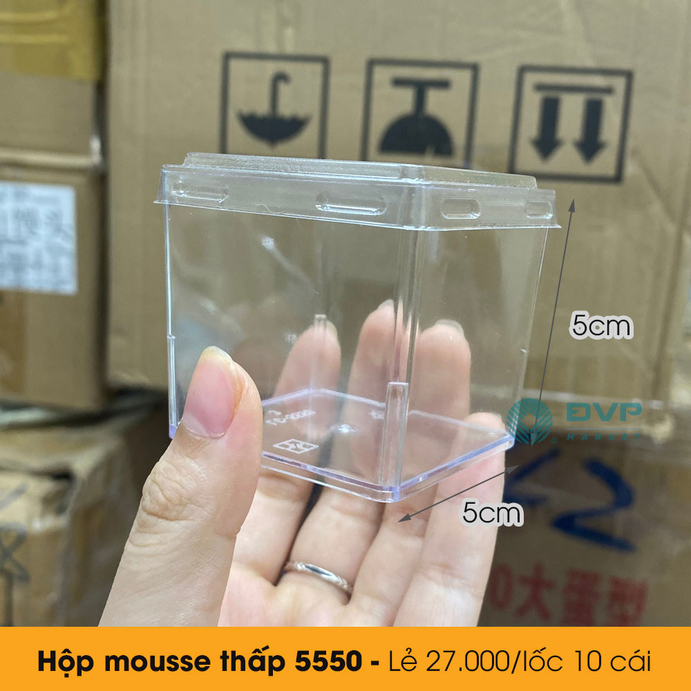 Ly nhựa mousse vuông thấp BN5550 - 5x5cm (10c kèm nắp)