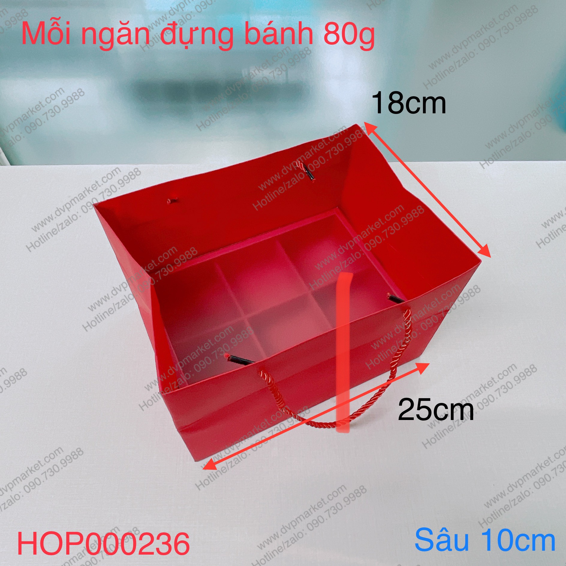 Set 05 Bộ túi hộp giấy đựng bánh đen đỏ 6 ngăn 80g nắp mờ