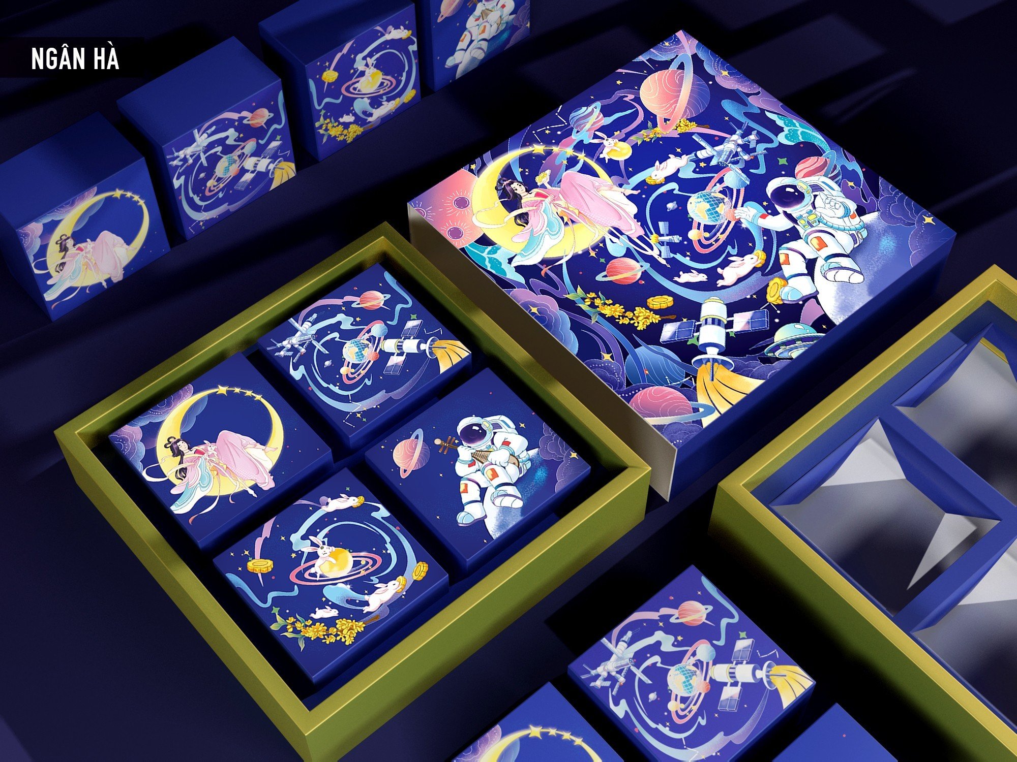 Set 05 bộ túi hộp TT 4 bánh 150-250g Ngân Hà 2023 Set 05 bộ túi hộp TT 4 bánh 150-250g Ngân Hà 2023 Set 05 bộ túi hộp TT 4 bánh 150-250g Ngân Hà 2023