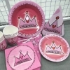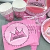 Set trang trí tiệc được in theo chủ đề Princess với họa tiết dễ thương, tông màu chủ đạo là hồng sẽ khiến cho các bé rất thích