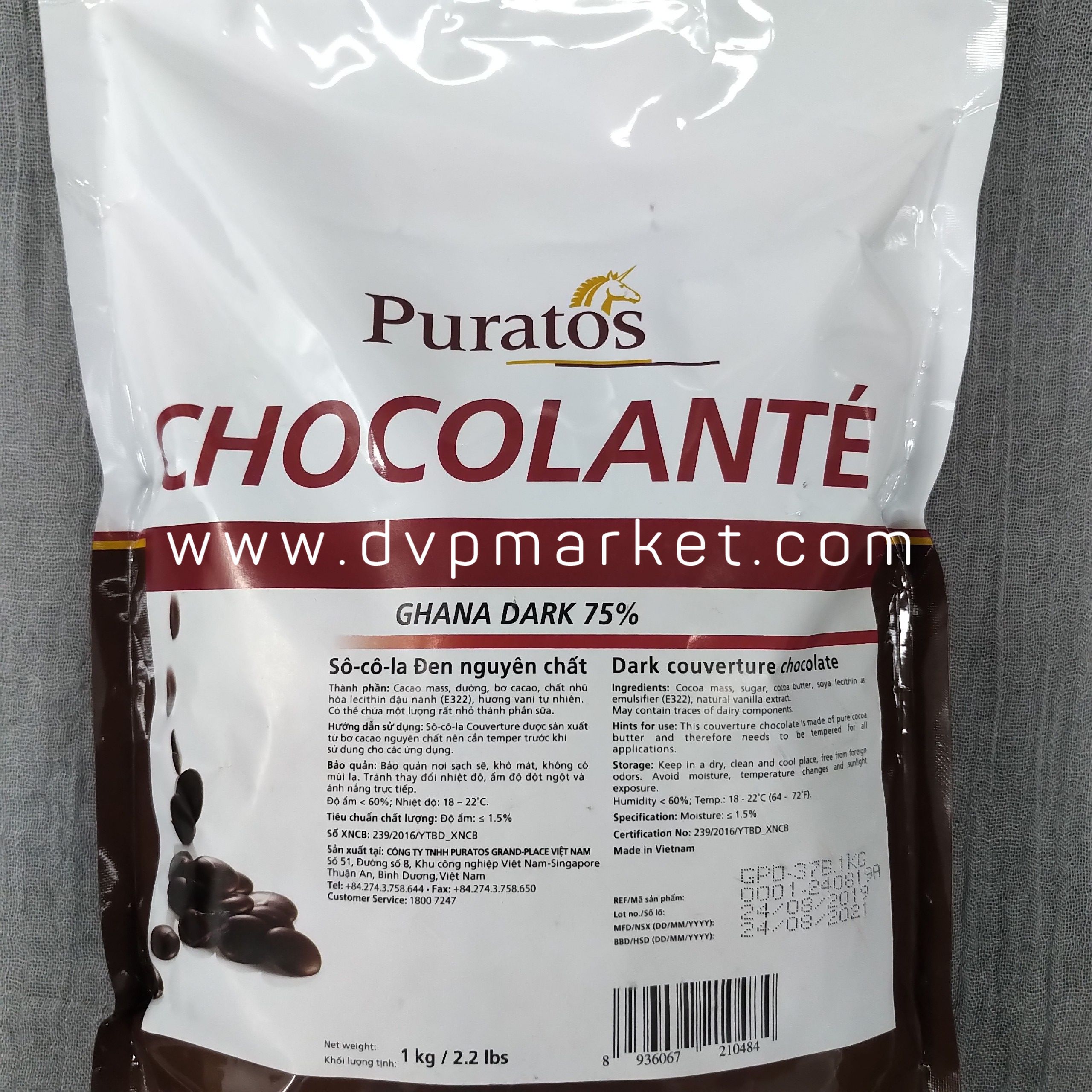 Puratos - Socola nút đen Ghana dark 75% (1kg)