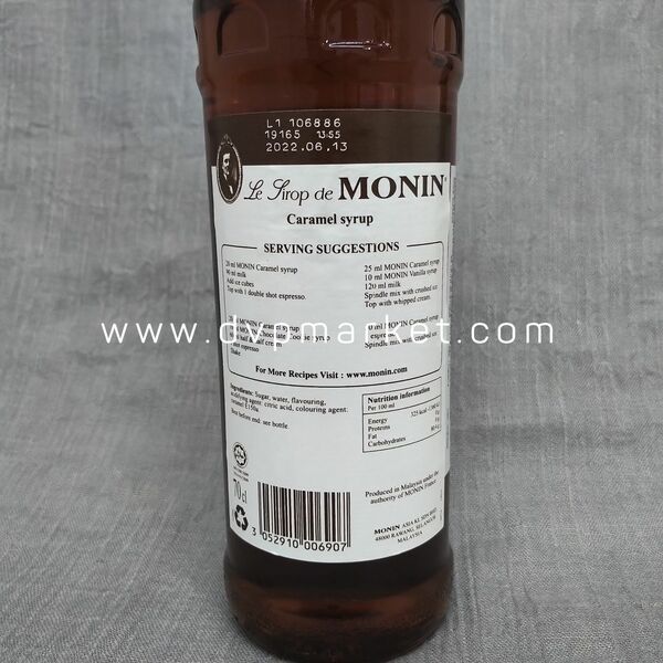 Syrup Monin Caramel 700ml là nước siro mang hương vị caramel thuộc thương hiệu Moin hàng đầu thế giới. Thành phần chính của loại siro này bao gồm đường, nước, hương tổng hợp, chất tạo màu,... kết hợp với nhau. Sản phẩm có màu sắc đẹp, hương thơm dịu bảo quản trong chai 700ml. Syrup Monin Caramel sản xuất trên dây chuyền công nghệ hiện đại theo tiêu chuẩn Pháp nên không có các chất độc hại, an toàn cho người sử dụng.