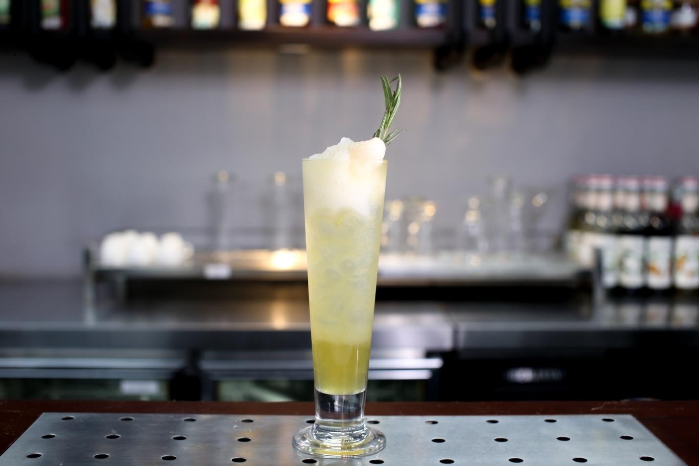 - Bước 2: Cho 10ml nước sả, 60ml trà Earl Grey, 10ml nước đường, 10ml nước cốt chanh, 20ml syrup đào, 20ml nước cam, đá viên vào Shaker lắc đều. Rót ra ly thủy tinh trang trí thêm đào tươi, cam vàng, sả lên trên thêm phần sinh động và hấp dẫn.