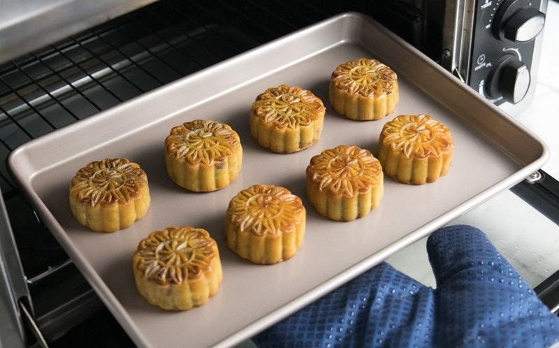 Thời gian nướng bánh cần được đặc biệt lưu ý phù hợp tùy theo trọng lượng và loại nhân bánh. Bởi khi nướng lâu, nhân bánh có thể nở ra khiến cho lớp vỏ ngoài bị méo, nứt, thậm chí vỡ ra. Trong quá trình nướng, nếu thấy bánh cứng thì lấy ra nhúng vào nước lạnh sau đó để vài phút rồi