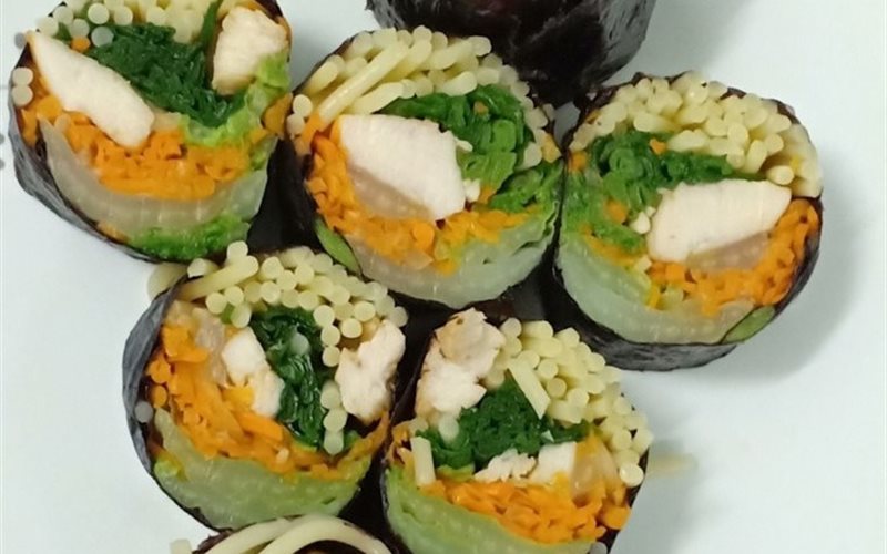 Sau đó chỉ cần cắt khúc như shushi và thưởng thức. Thường bạn sẽ thấy shushi được cuộn cùng cơm nưng nay ta lại thay thế bằng mì không những ngon lại còn rất thú vị đúng không nào.