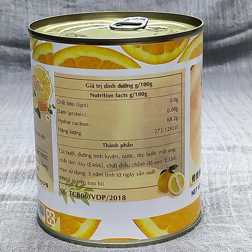 Thành phần chính của trà bưởi mật ong bao gồm cùi bưởi, đường tinh luyện, nước, đường fructose, tép bưởi, mật ong, chất làm dày, chất điều chỉnh độ axit. Sản phẩm được đóng trong hộp thiếc kín, an toàn, đảm bảo chất lượng. Trà bưởi mật ong chuyên dùng để pha nước uống hằng ngày tạo cho cảm giác mang hương vị ngọt ngào, mùi thơm từ bưởi mang lại cảm giác thoải mái.