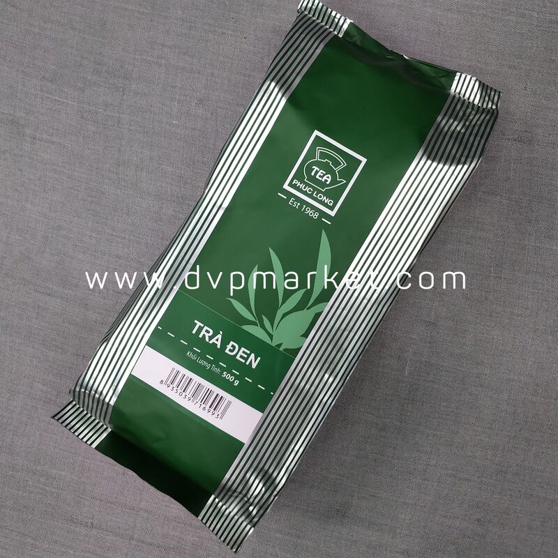 Trà đen Phúc Long 500g là từ những lá và đọt cây trà tươi, xay giã nát và ủ cho lên men trong thời gian rất lâu rồi phơi sấy khô. Nhờ sự lên men xảy ra mạnh tạo ra phản ứng hóa học khử độc tố nhưng không làm mất lượng caffein trong lá nên trà có màu đen và mùi hương đặc biệt. Trà khi pha có mùi thơm đặc trưng, mùi vàng nâu, vị đắng chát nhưng uống vào lại có vị ngọt dễ chịu.