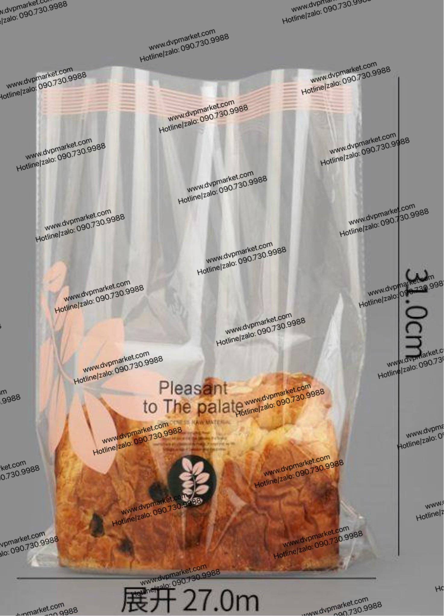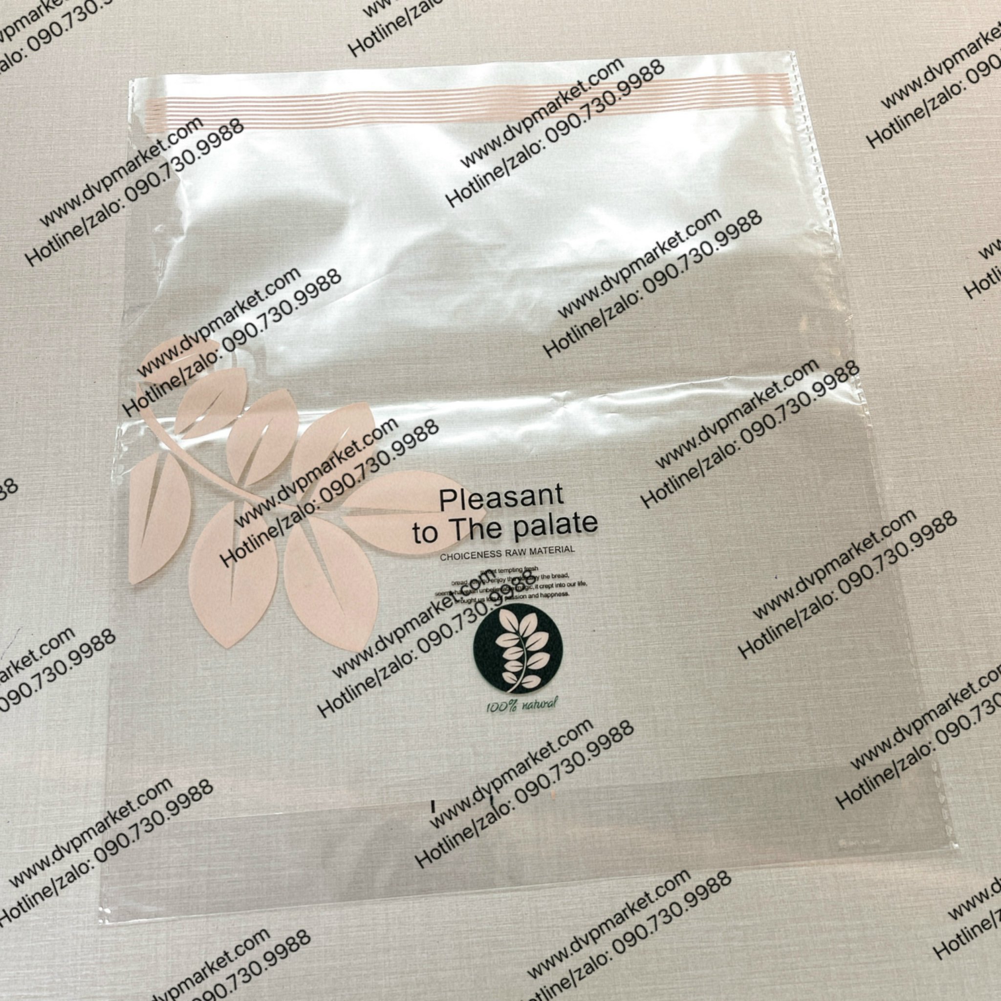 Túi bánh mì nilon ngang lá hồng 31x27cm (xấp 100c)