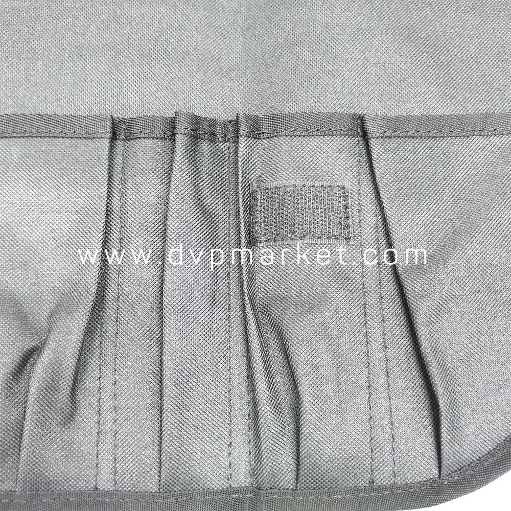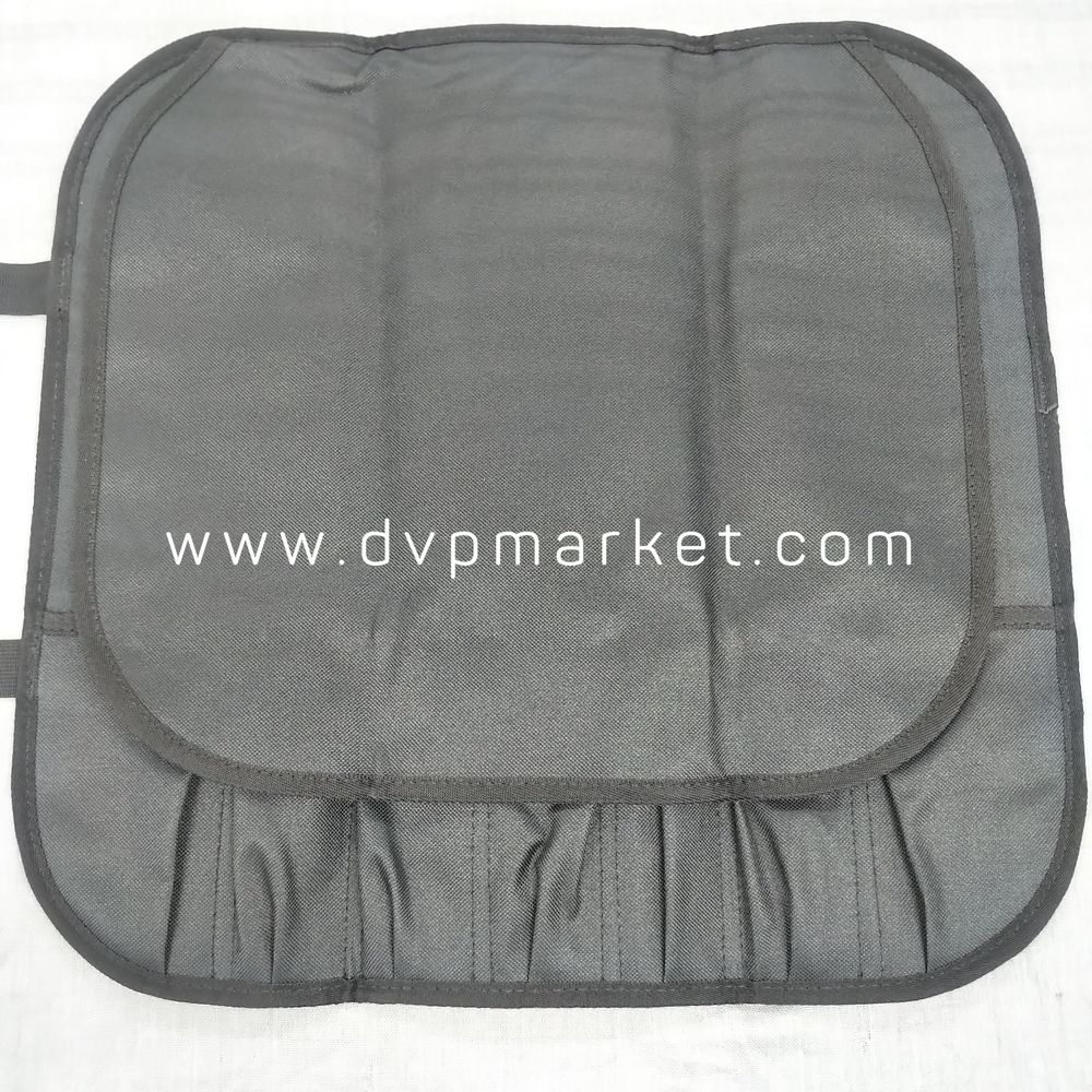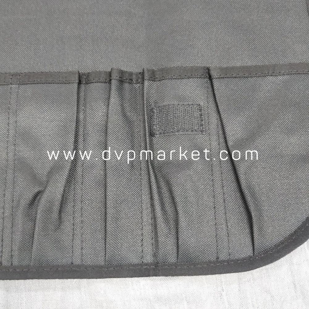 Túi làm bằng chất liệu vải bố dày, đường chỉ may chắc chắn, tỉ mỉ, đảm bảo độ bền sử dụng lâu dài theo thời gian. Sản phẩm có màu đen. Chất liệu có thể dễ dàng vệ sinh hay giặt giũ khi cần. Đồng thời mặt trước được in logo của thương hiệu Đại Vạn Phát rõ nét. Khi mở ra, bên trong gồm các ngăn giúp bạn có thể đựng được các loại dao khác nhau.