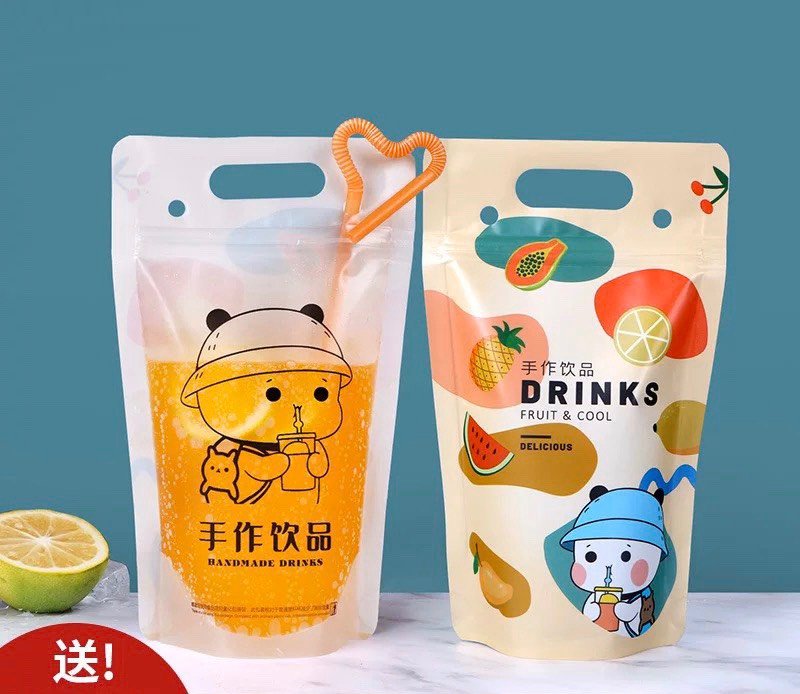 Là dạng túi chuyên dụng để đựng các loại nước uống khác nhau như sinh tố, nước ép, nước có đá viên... dùng để tiện mang đi và uống trực tiếp. Túi được làm từ nhựa dẻo dày và rất an toàn để thực phẩm, túi zip được làm kín chắc chắn để không bị rỉ nước hay rách khi đựng.