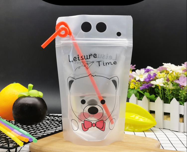 TÚI ZIP ĐỰNG ĐỒ UỐNG 450ML KÈM ỐNG HÚT - XẤP 100 BỘ