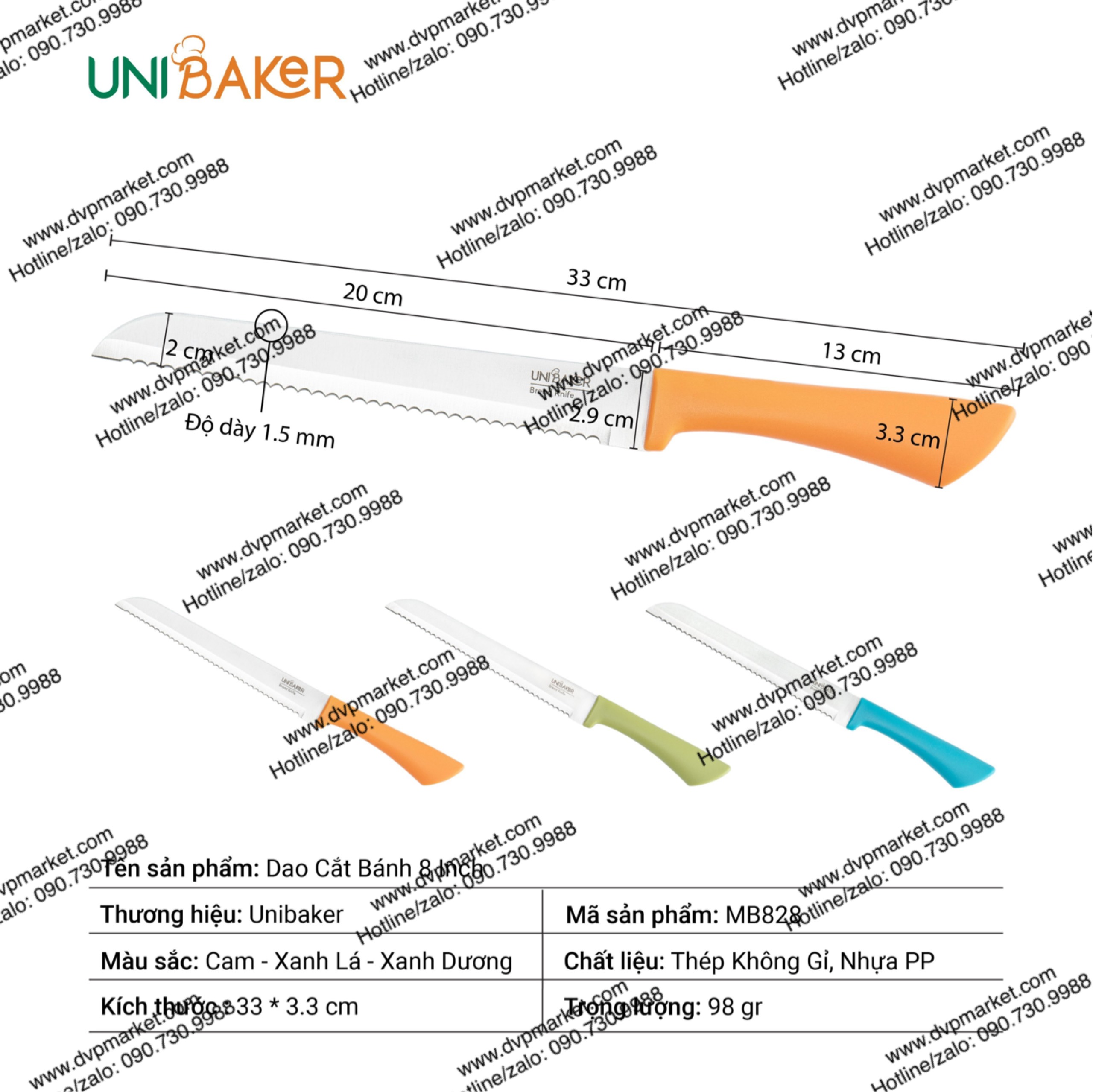 Unibaker - Dao Cắt Bánh Răng Cưa 8'' - MB828 ( cam-xanh lá-xanh dương )