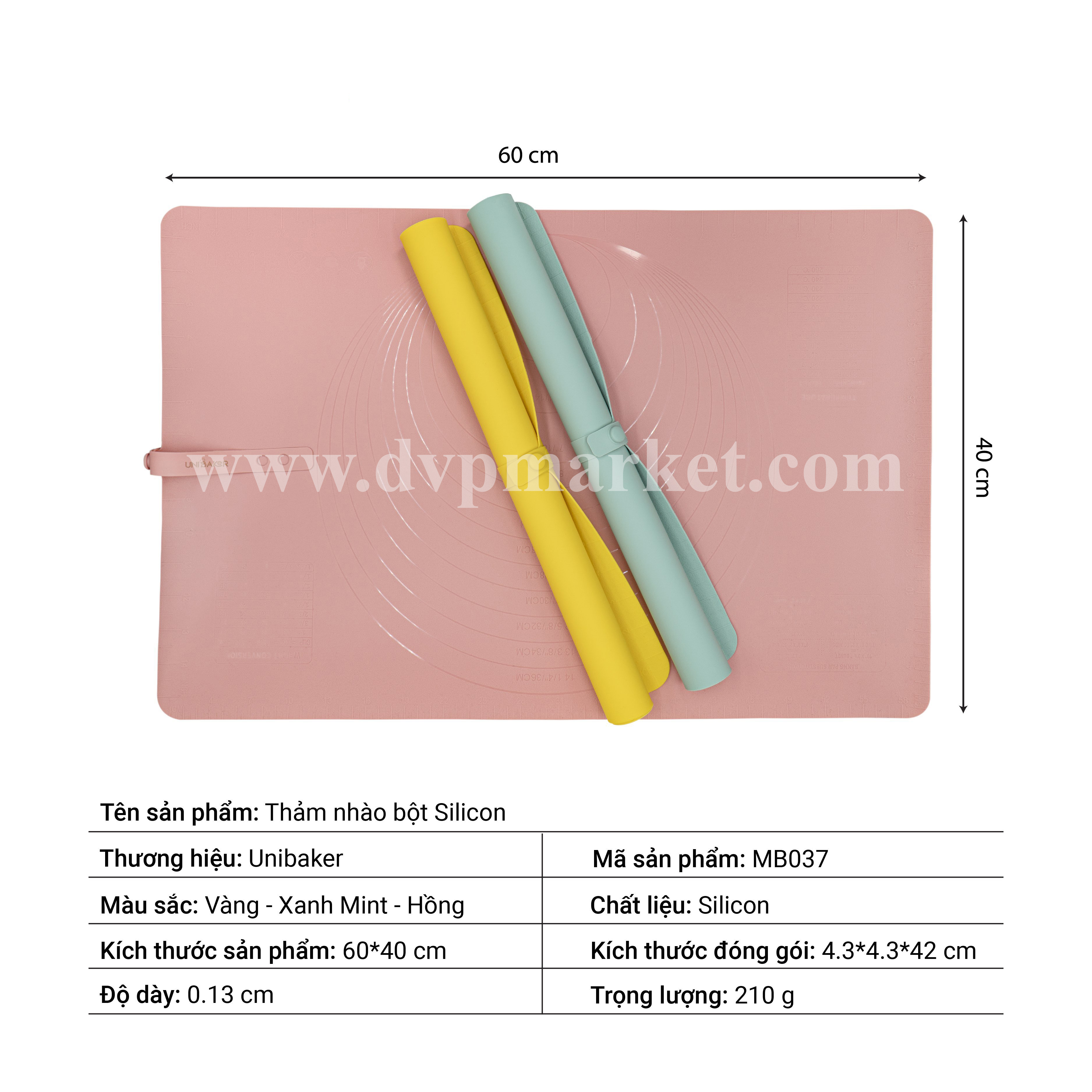 Thảm nhào bột silicon Unibaker – một dụng cụ không thể thiếu khi làm các món bánh đặc biệt là bánh mì, bánh bao,…
